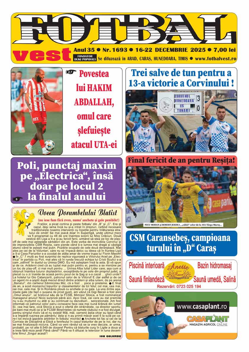 NUMARUL 1693 **** 16 – 22 decembrie 2025 ***** click aici